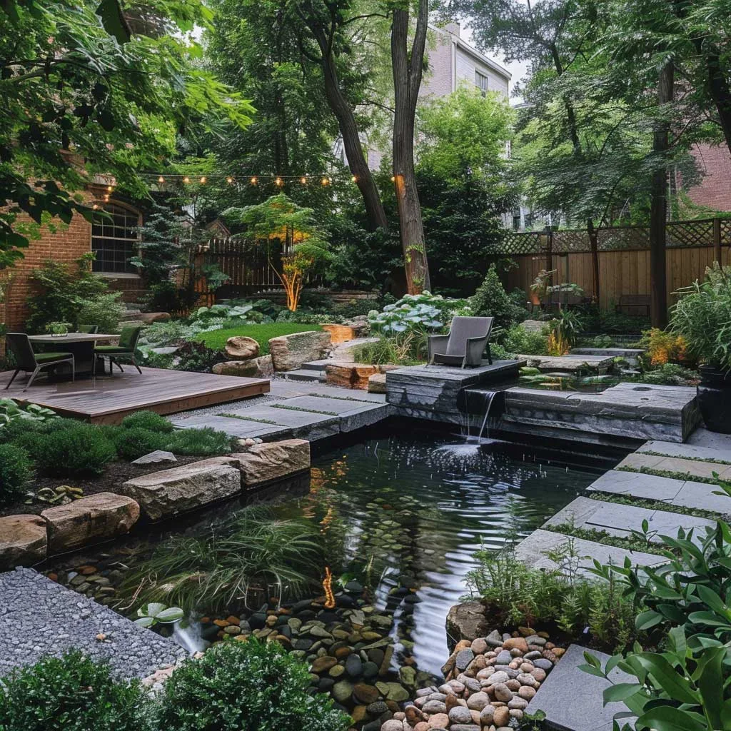Tính bền vững không chỉ nằm ở việc lựa chọn cây trồng mà còn ở vật liệu và quy trình sử dụng trong vườn. Khu vực ghế ngồi được bố trí xen kẽ giữa những mảng xanh, mang đến không gian nghỉ ngơi và suy ngẫm, được bao quanh bởi âm thanh của thiên nhiên và tiếng nước chảy nhẹ nhàng.