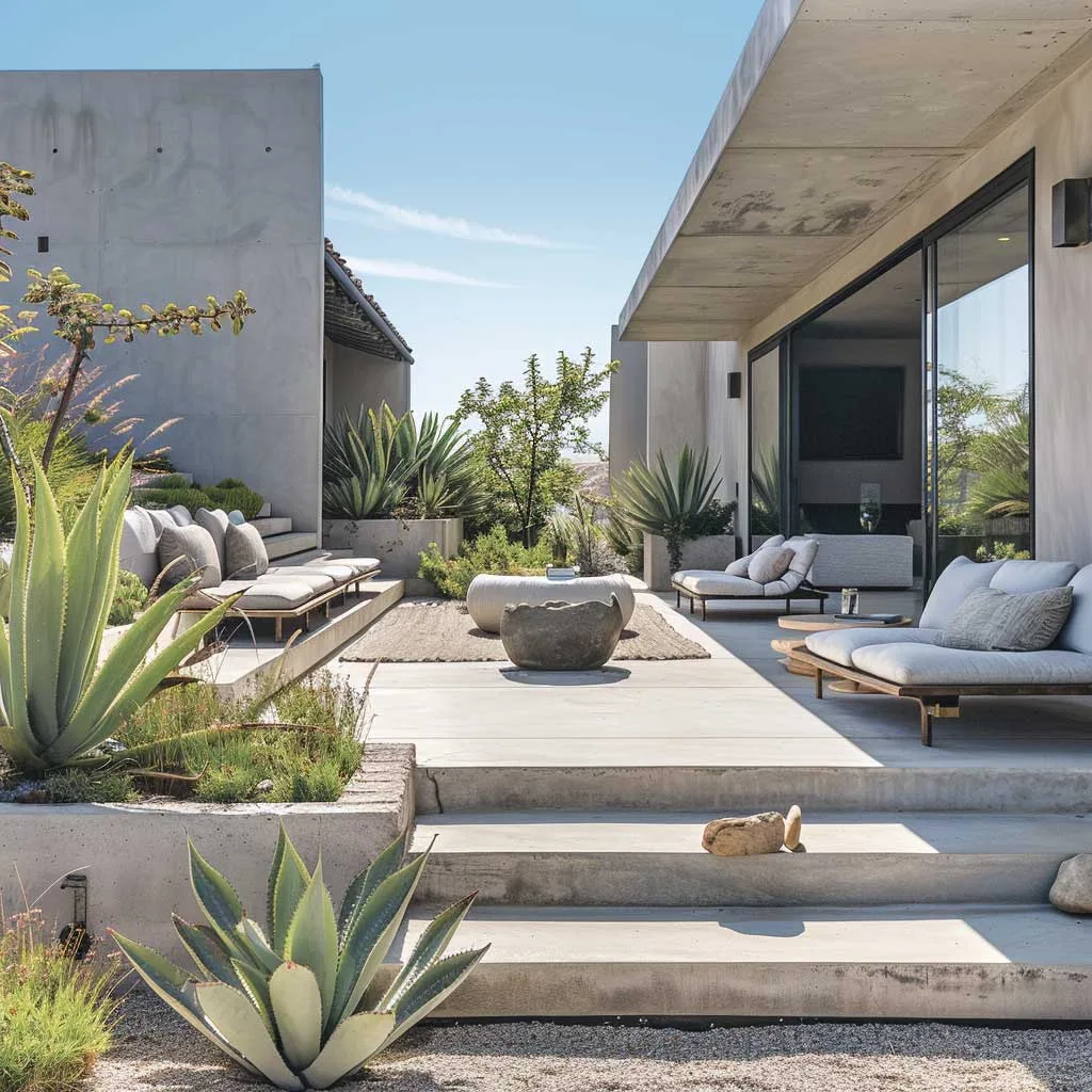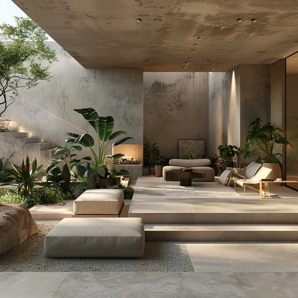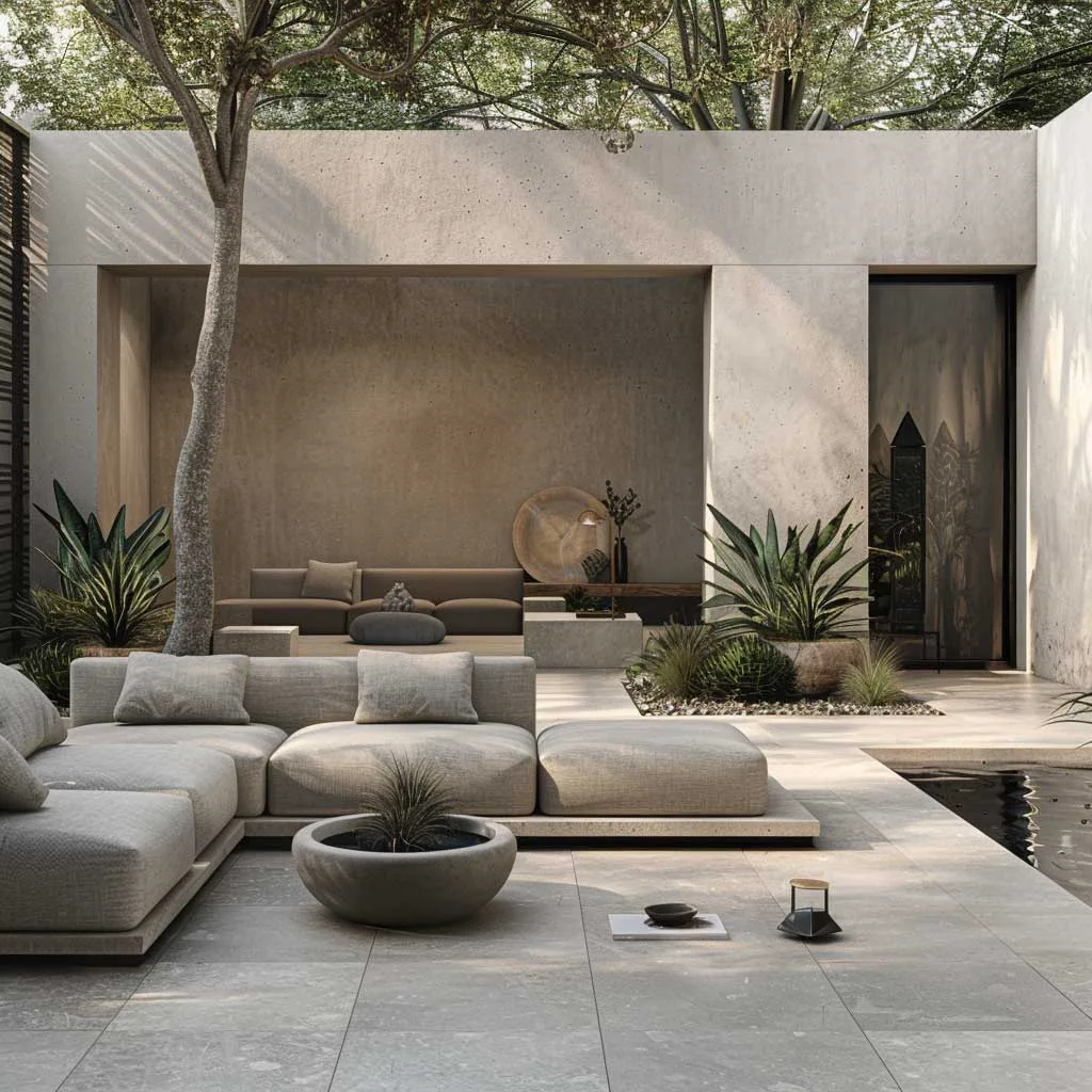 Thiết kế sân vườn đương đại, chủ nghĩa tối giản nổi bật với sự nhấn mạnh vào sự đơn giản, đường nét gọn gàng và bảng màu tiết chế, ưu tiên không gian và hình khối hơn. Cách tiếp cận này trong thiết kế sân vườn tập trung vào việc tạo ra một không gian ngoài trời yên tĩnh và thanh bình, bổ sung cho vẻ đẹp tinh tế của những ngôi nhà hiện đại.