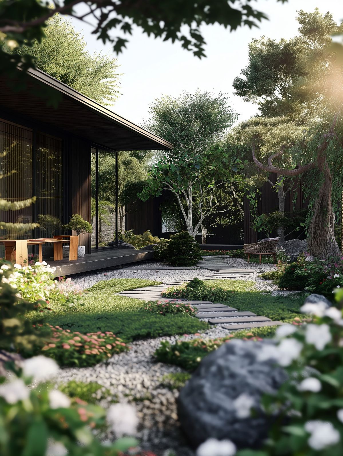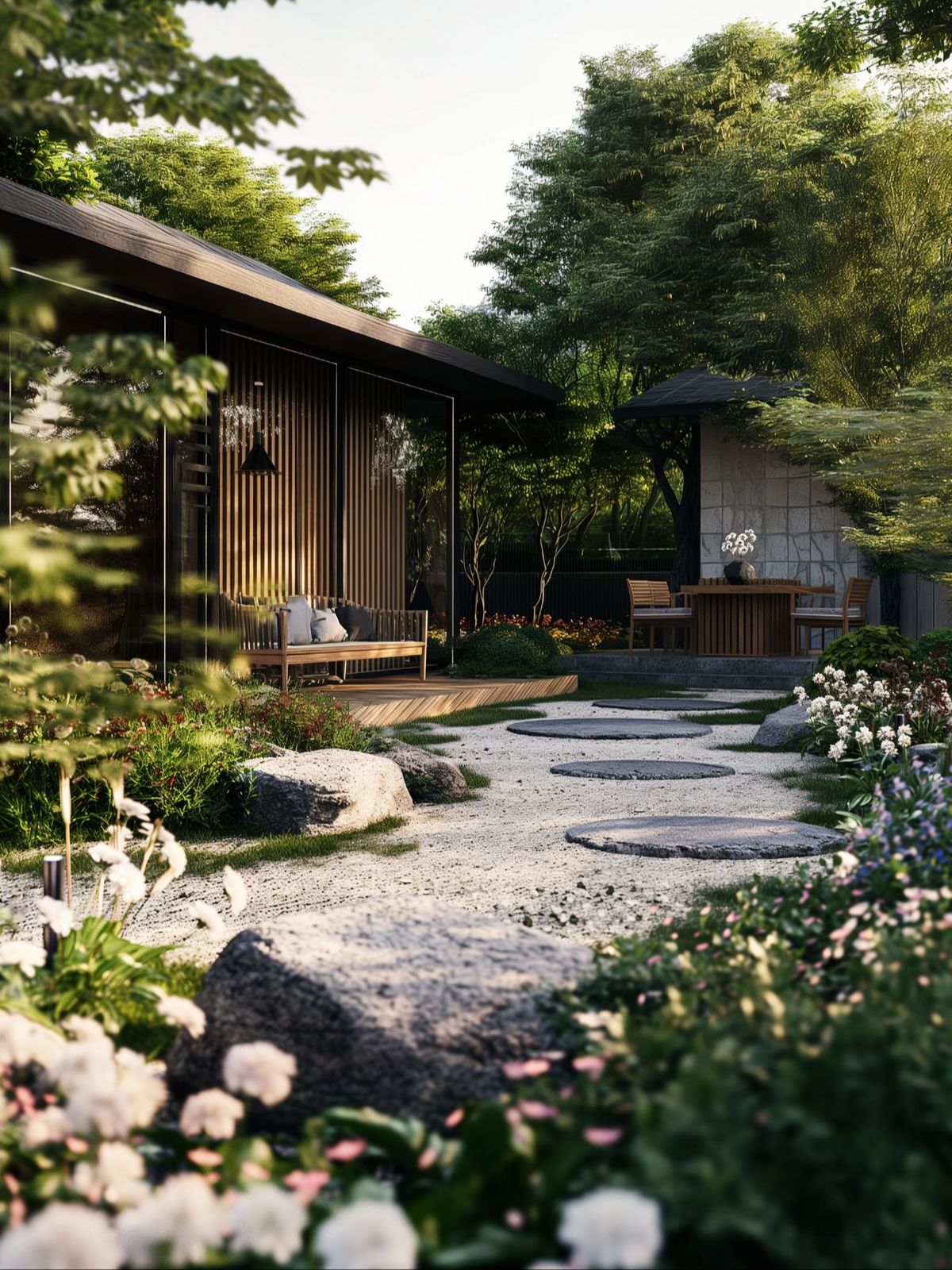 - Cần tận dụng những sự chuyển tiếp giữa các khu vực (hoặc phòng) trong vườn.