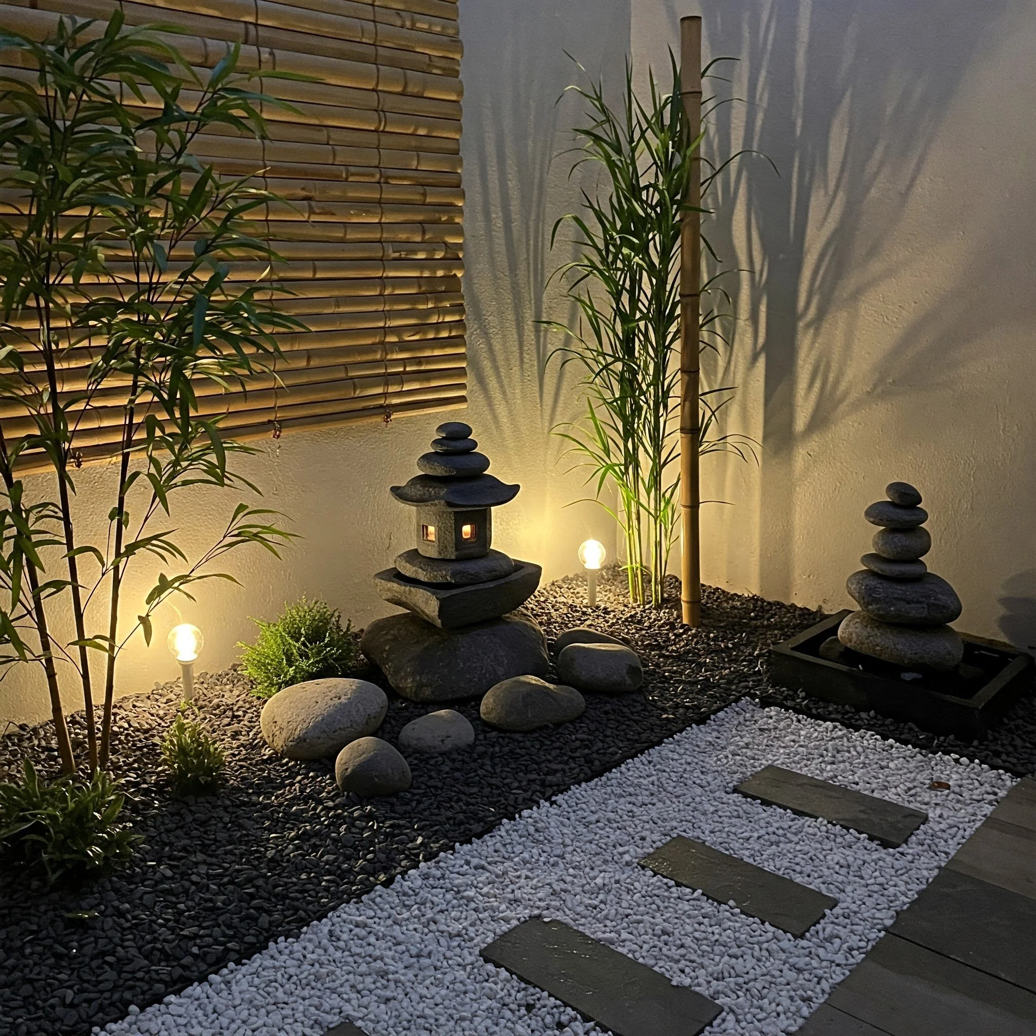 Đá và sỏi là những yếu tố không thể thiếu trong thẩm mỹ Zen truyền thống, tượng trưng cho sông, đảo và phong cảnh núi non thu nhỏ. Tin tốt là gì? Bạn không cần những loại đá đắt tiền, lạ mắt để tạo nên vẻ đẹp thanh bình. Các nhà cung cấp vật liệu cảnh quan địa phương thường bán sỏi số lượng lớn với giá cả phải chăng, và bạn có thể lựa chọn từ nhiều màu sắc trung tính—trắng, xám hoặc nâu nhạt—tùy theo sở thích của mình.