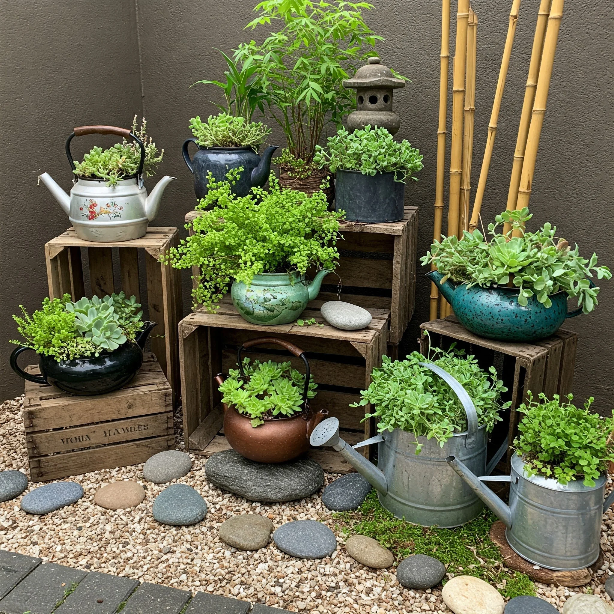 Hãy tìm quanh gara nhà bạn những vật dụng có thể tái chế thành chậu trồng cây hoặc viền trang trí – xô, ngăn kéo cũ, hoặc thậm chí cả chậu kim loại cũng có thể rất phù hợp nếu được trang trí hoặc sơn màu trung tính.