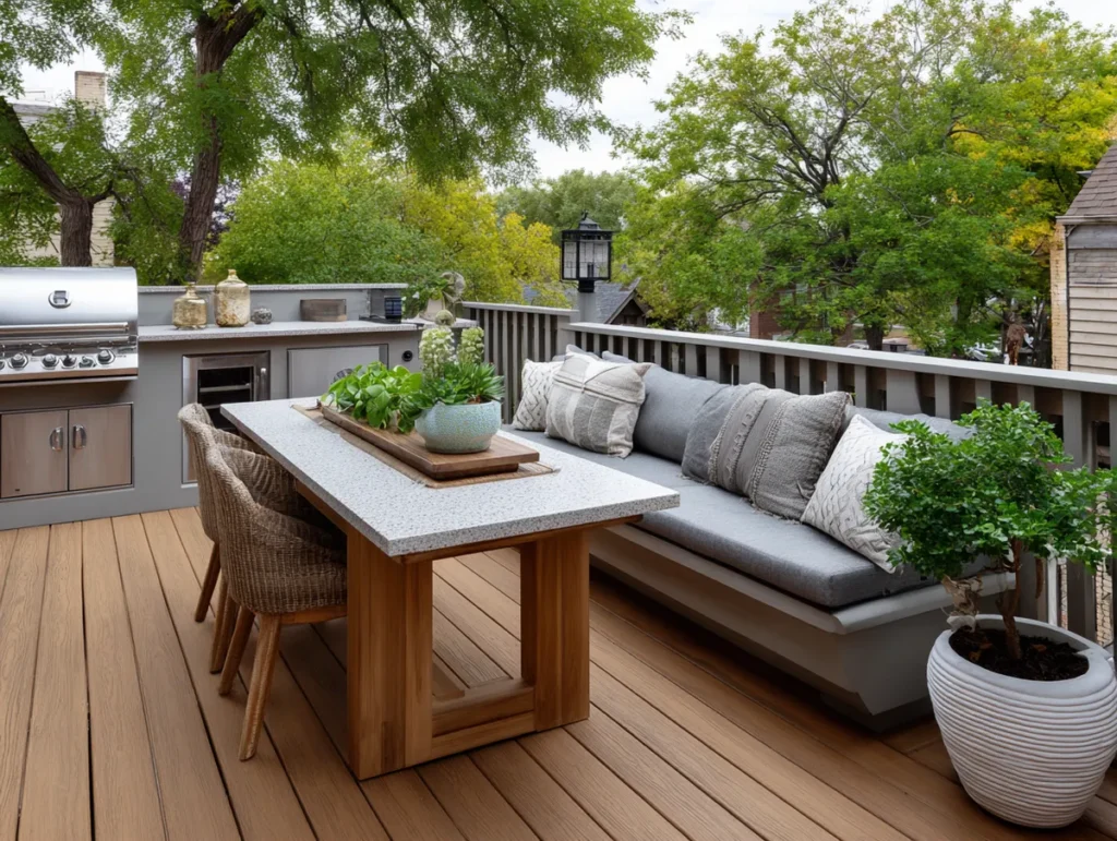 Bằng cách kết hợp các khu vực khác nhau như khu vực ăn uống, chỗ ngồi và bếp ngoài trời, sân thượng có thể đáp ứng mọi nhu cầu sinh hoạt ngoài trời của bạn.